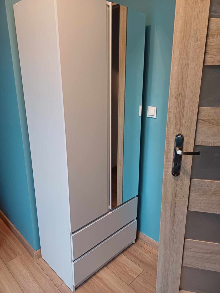 Na górze znajdziemy dwie sypialnie wyposażone w łóżka, komody oraz szafy.
